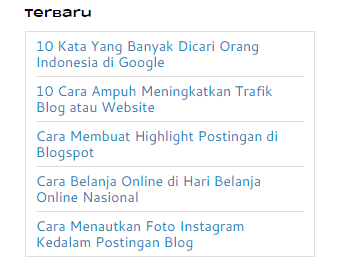 Meski sederhana, namun recent posts ini cukup memukau sebab mampu beradaptasi dengan tema blog. Contohnya mampu dilihat pada sidebar blog ini, atau lihat gambar berikut ini: